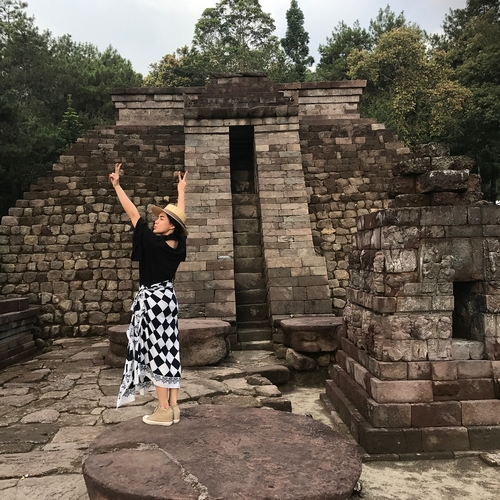 5. Senangnya Vicky Shu saat di Candi Sukuh