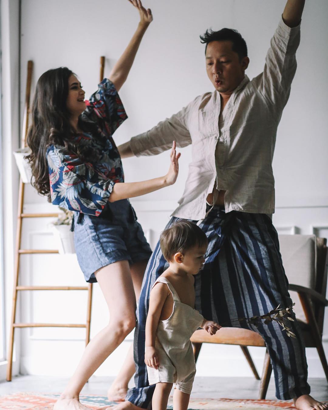 Saat kedua orang tuanya kompak berpose ala menari, Bjorka malah sibuk sendiri dan 'bodo amat'. Duh gemas!