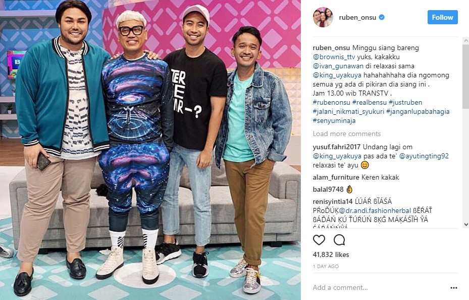 Tak hanya itu, Igun juga membandingkan ketampanan wajahnya dan Ruben. Menurut desainer yang juga dikenal sebagai presenter kondang itu, ketampanannya telah mengalahkan Ruben. "Menurut lo, gantengan lo atau Bensu?" tanya Uya Kuya lagi. "Gue, lah," tegas Igun.