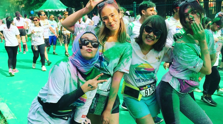 Keseruan pun dirasakan Pam saat ikut The Color Run Indonesia. Terlebih ia dikelilingi para sahabat yang ikut memeriahkan suasana.