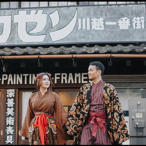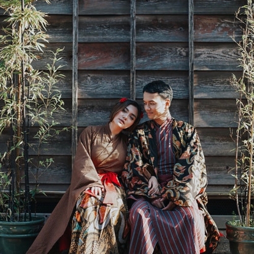 FOTO: Perdana, Vicky Shu Rilis Pemotretan Bareng Suami Saat di Jepang dengan Kain Batik