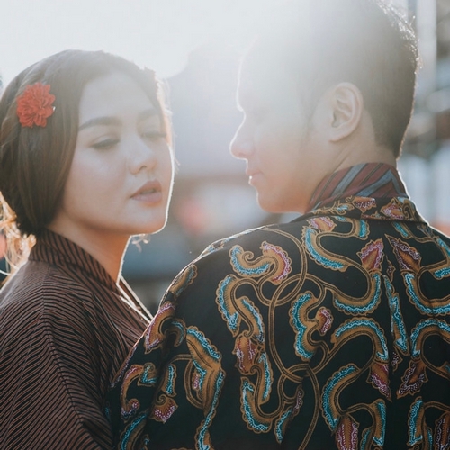 Mesra dan hangatnya pemotretan Vicky Shu bareng Ade Imam yang tak lepas dari unsur budaya Jawa.