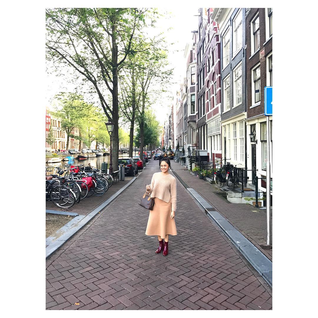 Kota pertama yang dikunjungi Marshanda adalah Amsterdam, Belanda. Ia nampak fashionable dengan setelan baju berwarna senada ini, bukan?