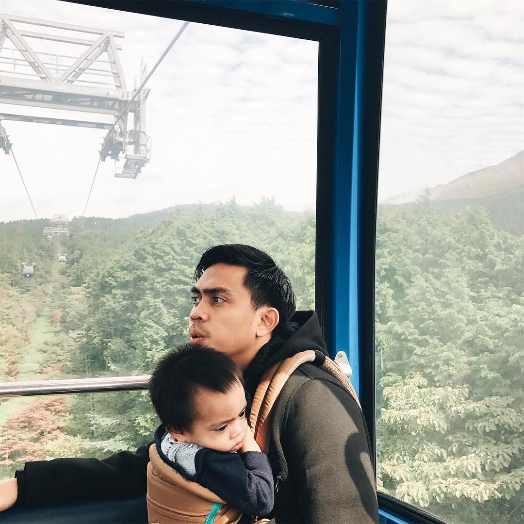 Keberanian Sekala memang patut diacungi jempol nih! Ia tak merasa takut sedikitpun nih saat naik kereta gantung yang berada di ketinggian seperti ini.