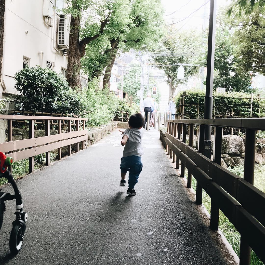 Selain tak takut ketinggian, Sekala juga aktif banget saat di Jepang. Lihat saja ia sempat lari-larian di kawasan Stasiun Kanda, Jepang.