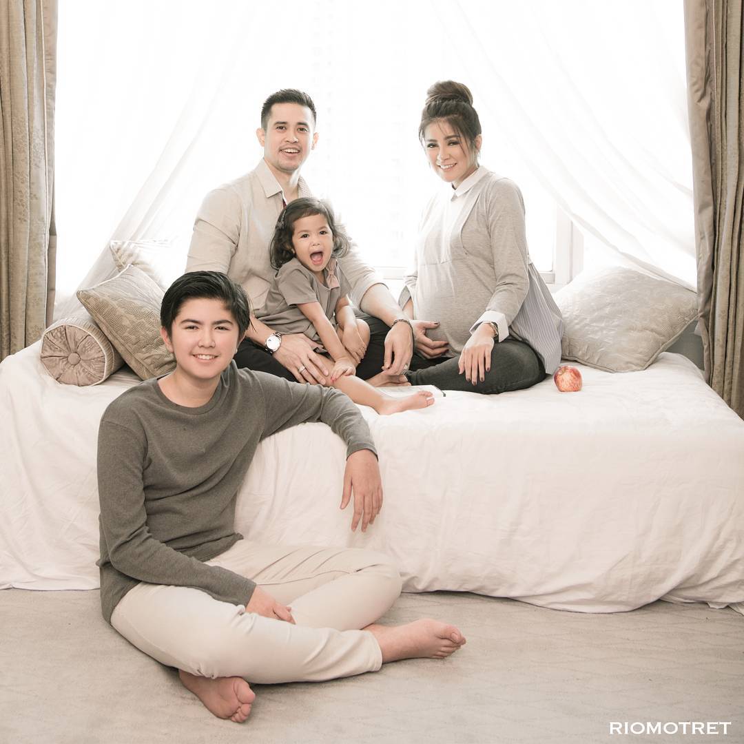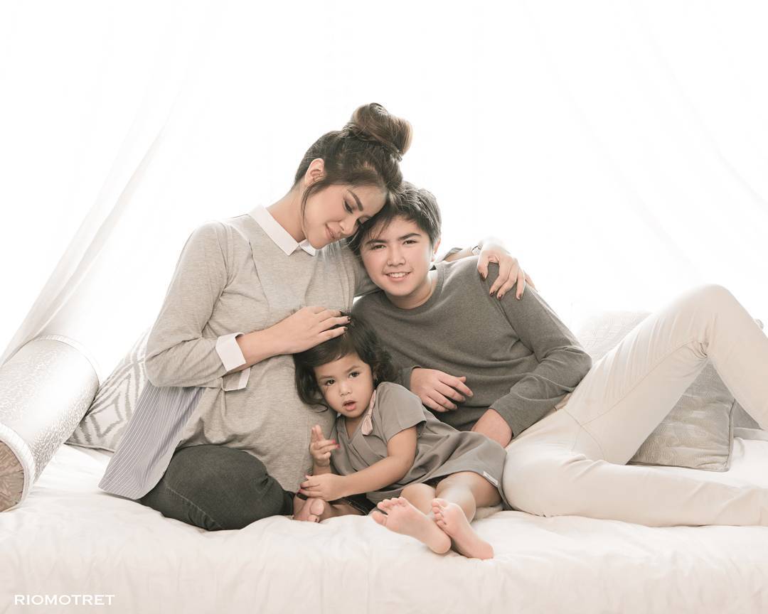 Selain maternity shoot, nampaknya foto ini bisa pula dijadikan pajangan sebagai family potrait terbaru keluarga Olla dan Aufar.