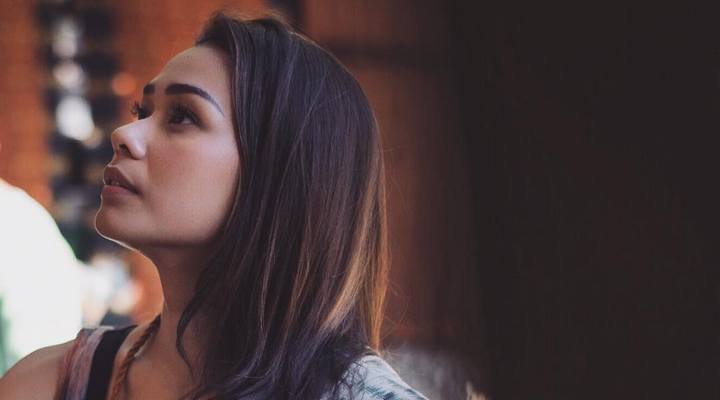 Eksotisnya Adinia Wirasti saat berpose menghadap matahari ini dijamin membuat semua pria klepek-klepek bukan?