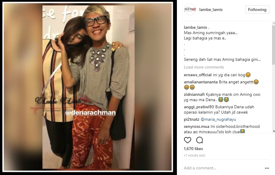 "Mang dasar nya aja bci .... di kasih apem malah milih monas hadeeuuuhh," sindir@***.s04. "gilaakkkkk.. mending perempuan beneran drpda jadi2an kyk gini," cibir @mi****naa26. "Bukannya denna itu trasgender ya , berarti co sm co dong," imbuh @****a_24.