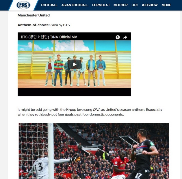 Bagaimana pendapat kalian jika lagu "DNA" BTS akan benar-benar menjadi lagu mars Manchester United selama pertandingan Liga Utama Inggris nantinya? Sementara itu, BTS akan segera mengakhiri masa promosi comeback mereka dengan merilis acara spesial bertajuk "BTS Countdown" pada tanggal 12 Oktober mendatang.