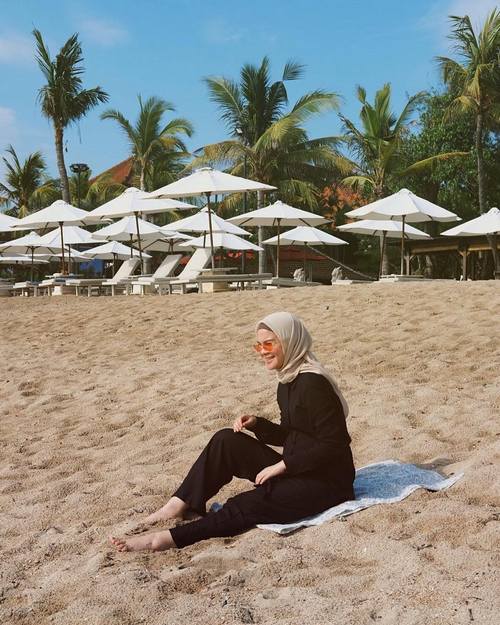5. Tantri Namirah Berjemur di Pantai