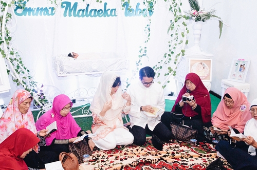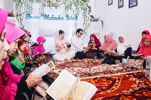 Pengajian yang digelar di rumah mereka ini dihadiri oleh seluruh keluarga dan kerabat keduanya.