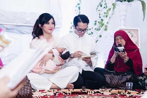 Fita Anggriani dan sang suami, Jamie Iqbal, menggelar pengajian aqiqah untuk Emma, anak pertamanya pada 1 Oktober kemarin.