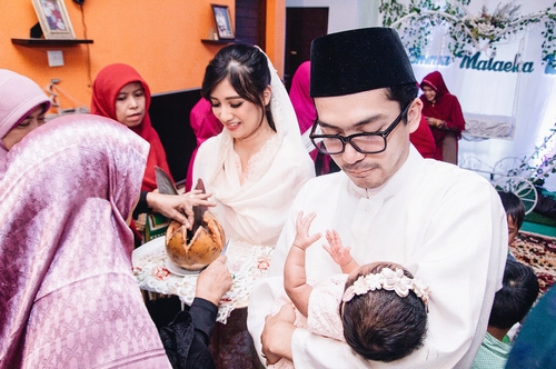 Serangkaian prosesi aqiqah pun dilakukan di sana, salah satunya adalah prosesi potong rambut.