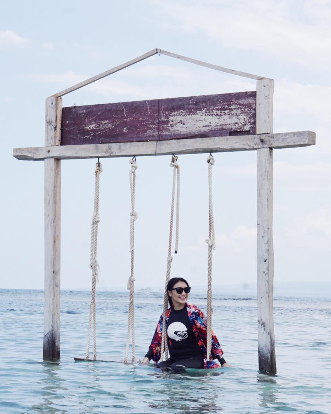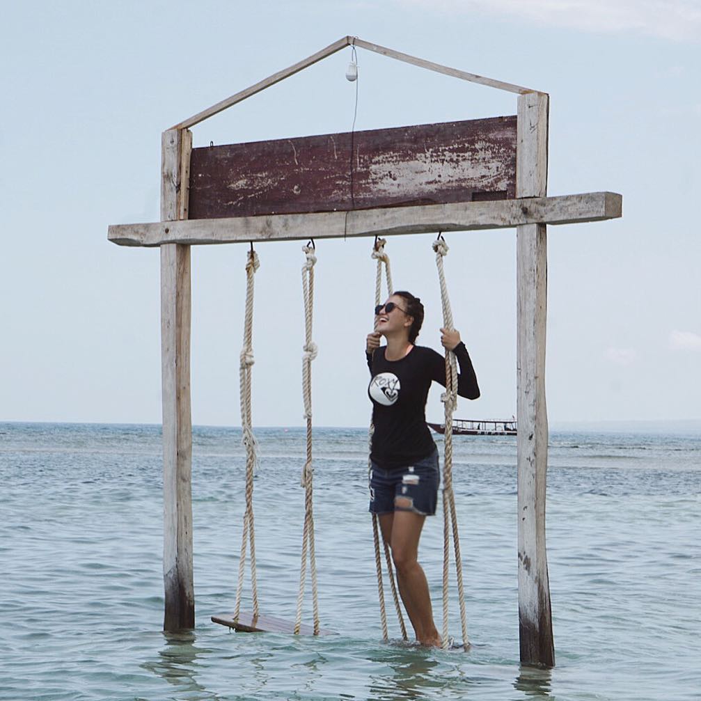 Citra tak mau melewatkan kesempatan untuk berfoto di salah satu ayunan paling hits di Gili Air ini.