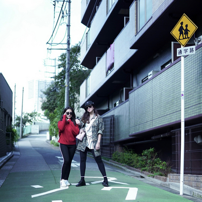 Michelle dan Marsha kemudian bergaya ala anak gaul Jepang saat mampir di kawasan gang jalan Ikebukuro.