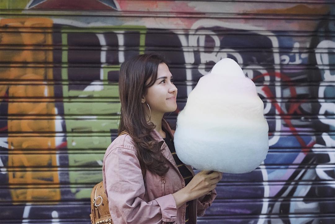Saat berada di Takeshita Street, Michelle mencoba membeli gulali besar yang katanya memiliki rasa super manis dan lezat.