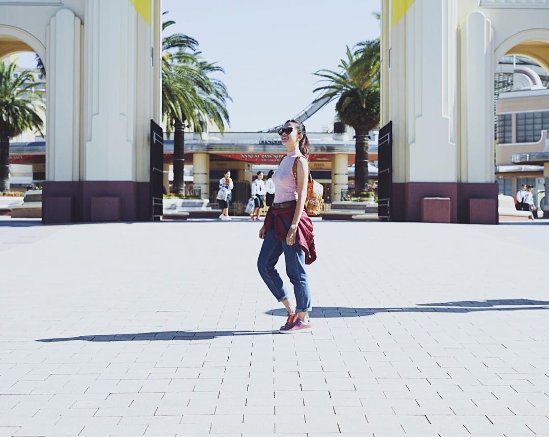 Michelle Joan mengawali jalan-jalannya dari Universal Studio Osaka. Katanya ia sedang 'mencari UFO' di sini.