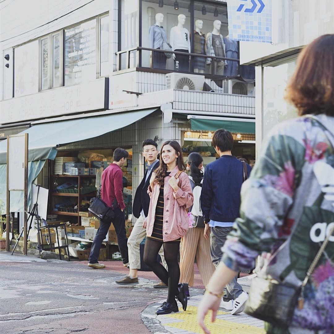 Jalan-jalan di kawasan Omotesando tak membuat Michelle kalah gaul dong dengan penduduk Jepang asli.