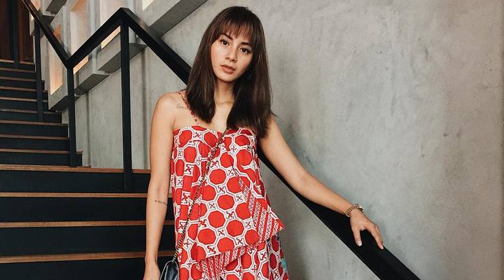 Kirana Larasati pamerkan gaya super kece dengan gaun berbelahan rendah ini.