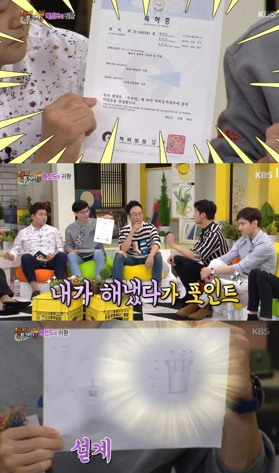 Untuk membuktikan keseriusannya, member TVXQ ini pun membawa sertifikat paten atas hasil karyanya tersebut. Alhasil, sertifikat itu membuat para penonton dan MC acara terkejut sekaligus terkesan. Tidak hanya itu saja, Yunho juga sekaligus membawa gambar dari penemuannya dan menjelaskannya secara singkat.