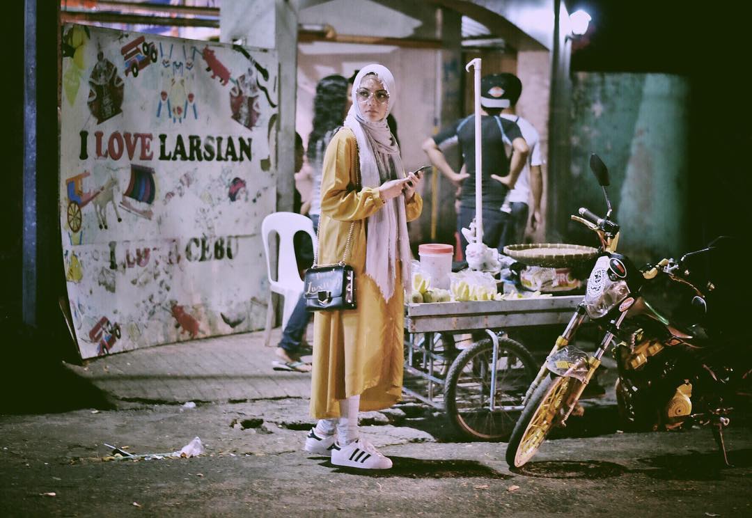 Begini tampilan Rina Nose ketika ia menginjakkan kakinya ke Kota Cebu, Filipina.