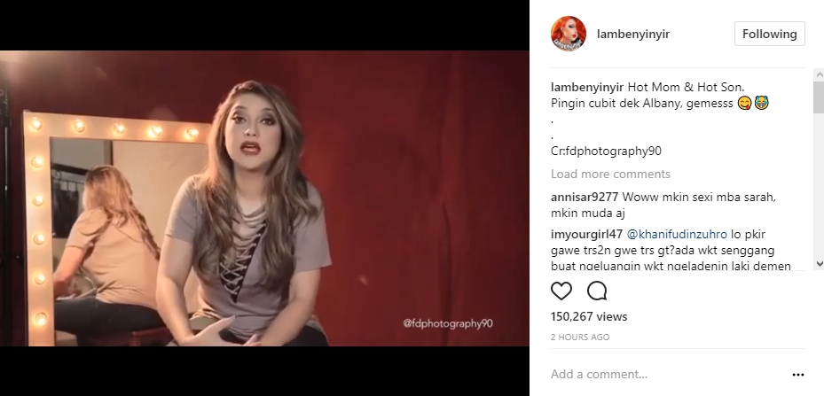 Benar saja, Sarah yang masih memiliki wajah cantik seperti saat dirinya masih muda, dinilai tak cocok menampilkan pose sensual bersama sang putra. "Kok menurutku gak pantes ya sama anak nya baju dan posenya begitu.. Sorry, just pendapat loh ya.." ujar @anik_*****a. "Mo kyk maya n al.. Sarah masih cantik awet muda sech.. Tp phutu ama anak aneh jg klo penampakannya kyk gini.." kata @l_*********f_i_t_r_i. "Mbok ya bajunya jgn vulgar bgt depan anak fotoshoot ma anak kya ama pacar," imbuh @c*******zza_cilvinery.