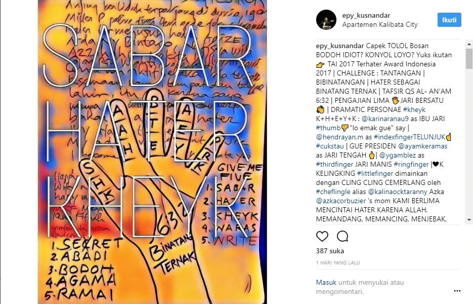 Komedian sekaligus pesinetron itu mengunggah postingan yang bermaksud untuk menyindir hatersnya. Namun entah apa tujuannya, ia juga turut menyebut nama putra Kalina dan Deddy, Azka Corbuzier.