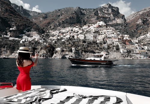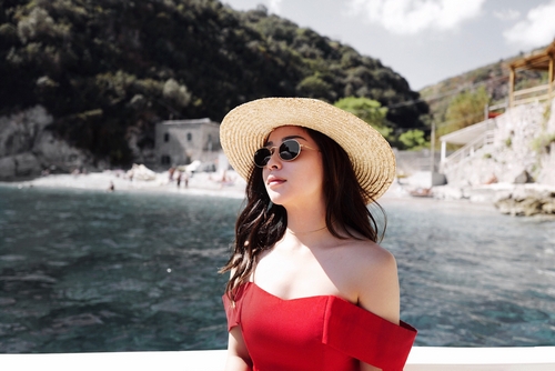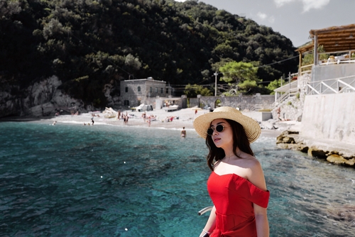 Seperti saat dirinya menikmati wisata di kawasan La Conca del Sogno, Italia ini. Dirinya mengenakan gaun berwarna merah yang seksi abis!