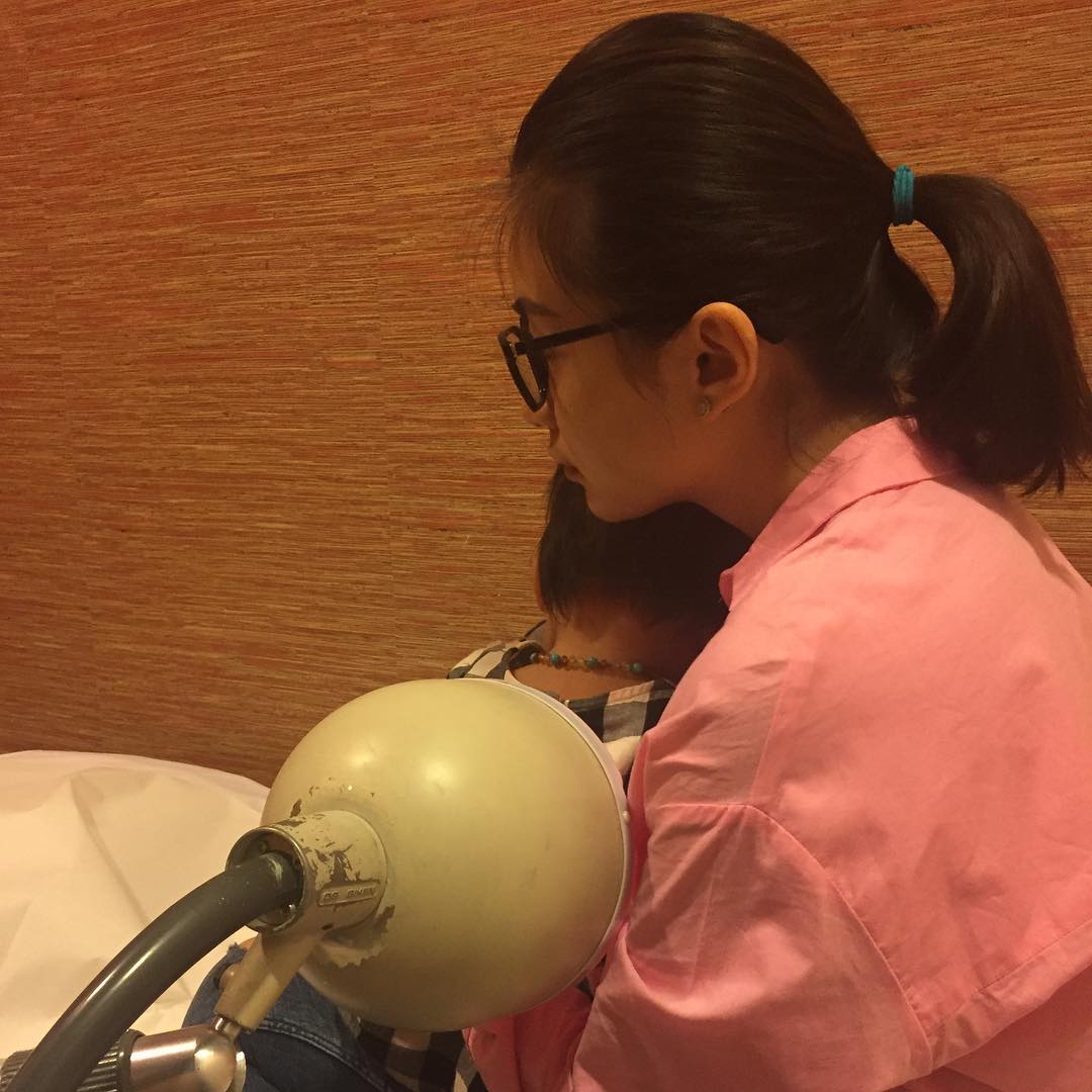 Chelsea pun melakukan perawatan insentif untuk sang buah hati, salah satunya dengan menghangatkan punggung Nastusha agar lendir dalam badannya bisa keluar seperti ini.