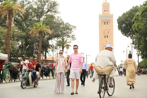 Seperti kebanyakan turis lainnya, dua sejoli ini berkesempatan untuk menjelajahi Place Jemâa el-Fna di Marrakesh.