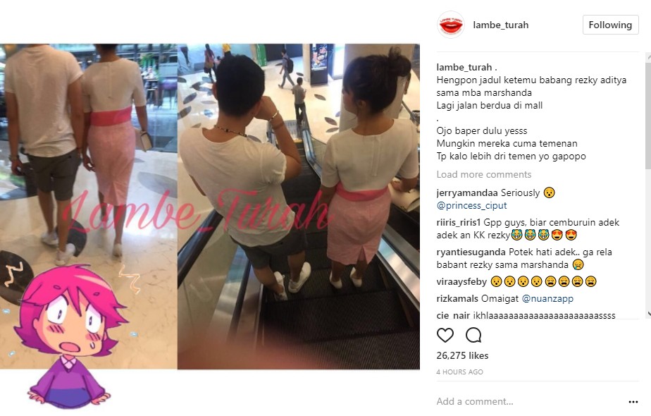 Kabar soal Rezky Aditya dan Marshanda itu bermula dari postingan akun gosip @lambe_turah. Dalam postingan itu, tampak keduanya hanya jalan berdua tanpa beberapa sahabat yang bersama mereka. Tak hanya itu, posisi jalan mereka pun tampak berdekatan. "Hengpon jadul ketemu babang rezky aditya sama mba marshanda Lagi jalan berdua di mall Ojo baper dulu yesss Mungkin mereka cuma temenan Tp kalo lebih dri temen yo gapopo," tulis akun gosip tersebut dalam keterangan postingannya.