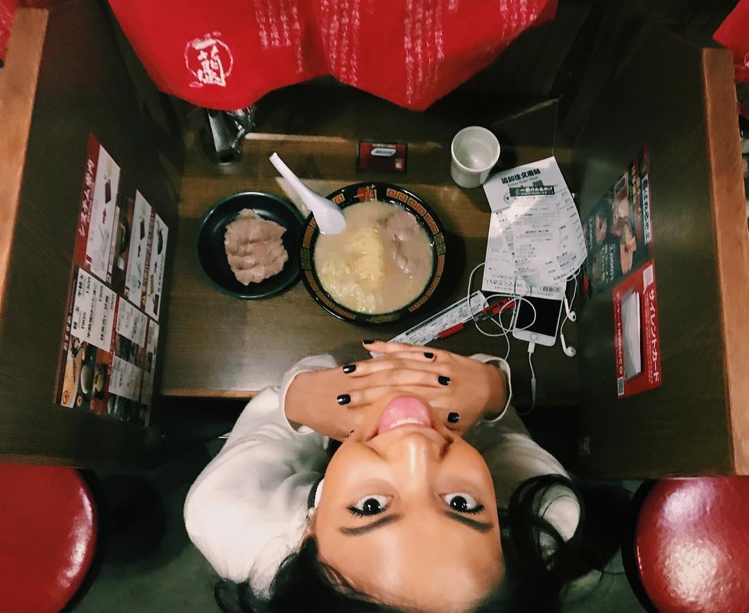 Selama liburan, Aurelie menjajal makanan khas Jepang, ramen dengan rasa terenak yang ada di kawasan Ichiran, Shibuya.