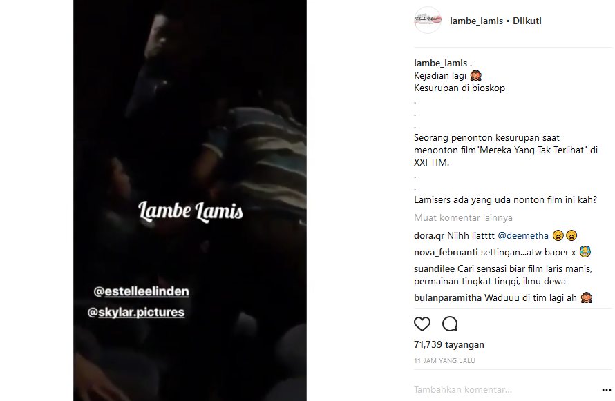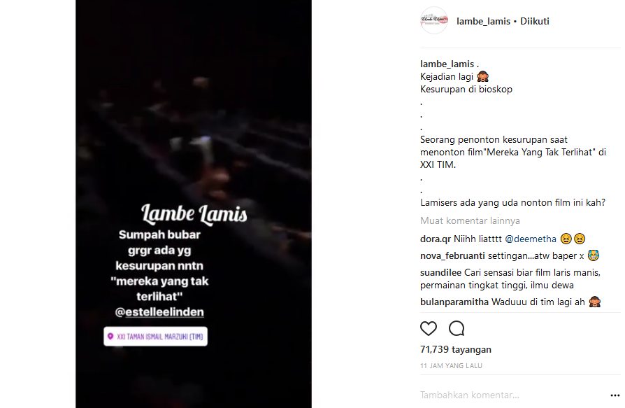 "Sumpah bubar grgr ada yg kesurupan nntn "mereka yang tak terlihat" @estellelinden," tulis seseorang dalam caption video tersebut. "