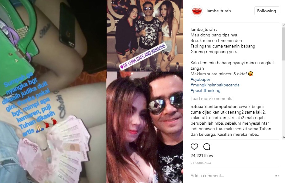 Tak hanya itu, dalam postingan lain tampak dua wanita seksi itu mengunggah foto sejumlah uang yang cukup banyak. Uang ratusan ribu itu diklaim pemberian Judika. "Sumpah ga nyangka bgt dikasih judika duit gini, thanks pakai bgt, mimpi apa kemaren, puji Tuhan dikasih artis," tulis salah satu wanita seksi itu dalam keterangan postingannya.