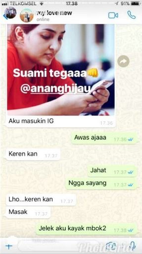 Usut punya usut, Anang rupanya mengancam akan mengunggah foto polos Ashanty yang tanpa make up ke Instagram. Dalam pesan singkat itu terlihat musisi sekaligus politisi itu juga mengirimkan foto istrinya yang tengah memegang ponsel.