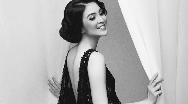 Sandra Dewi tampil beda dengan gaun super klasik dan rambut bergaya Marilyn Monroe.