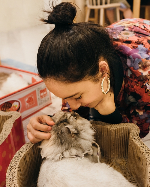 Ia juga mampir di salah satu kafe yang memiliki banyak kucing peliharaan demi menarik para pengunjung.