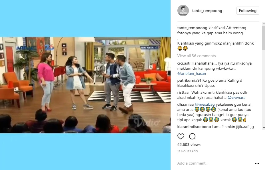 "Lancar ya klarifikasinya, coba dong klarifikasi soal isu jd PHO keluarga RANS," sindir @s******rya. "Ko gosip ama Raffi g d klasifikasi sih?? Upsss," ujar @pu******nia91. "Kq gak ad klarifikasi ttg hubungan dia sm raffo dan gigi hahaha glrn yg laen" di klarifikasi, kapan foto bareng sama gigi hababa," timpal @d*****a93.
