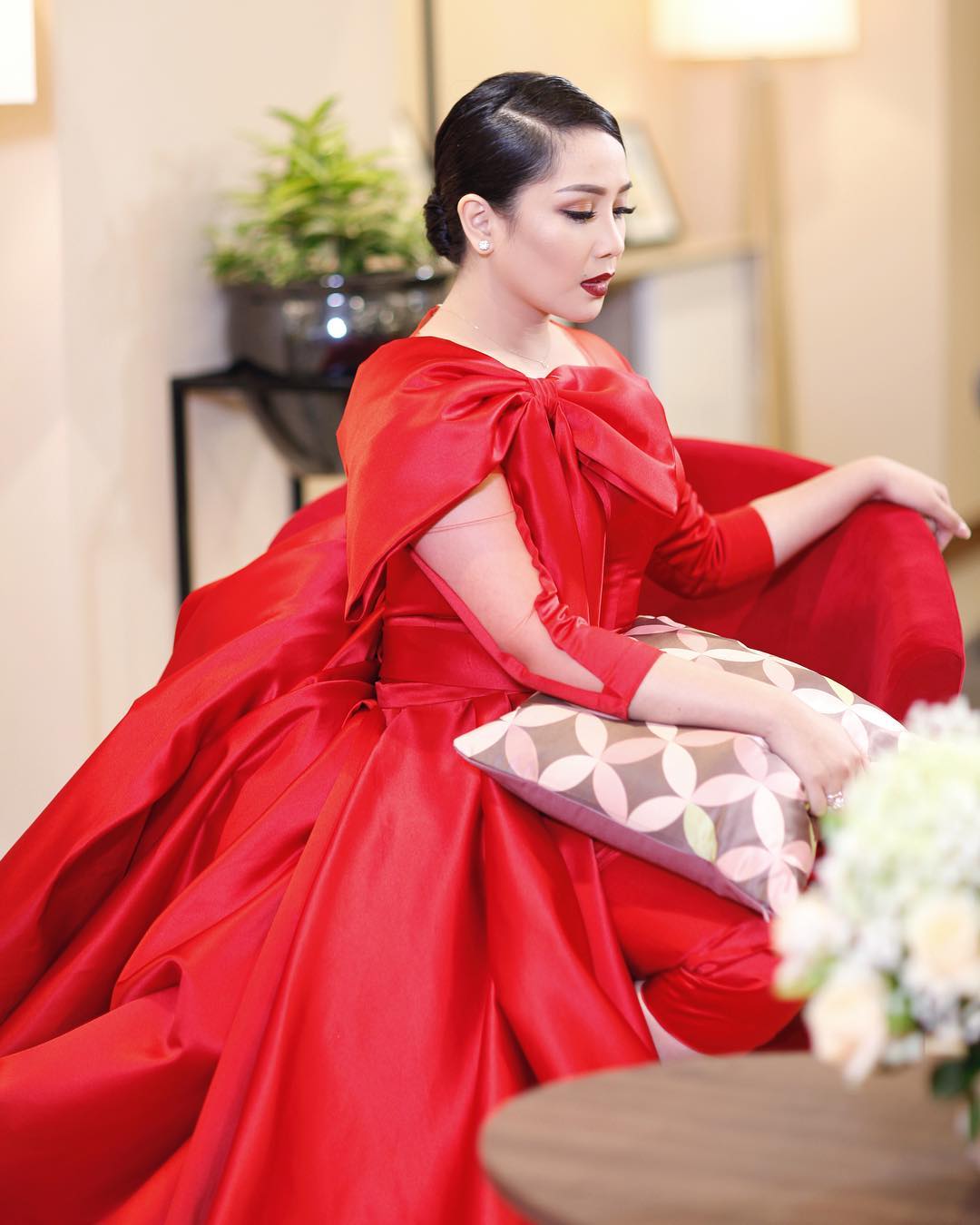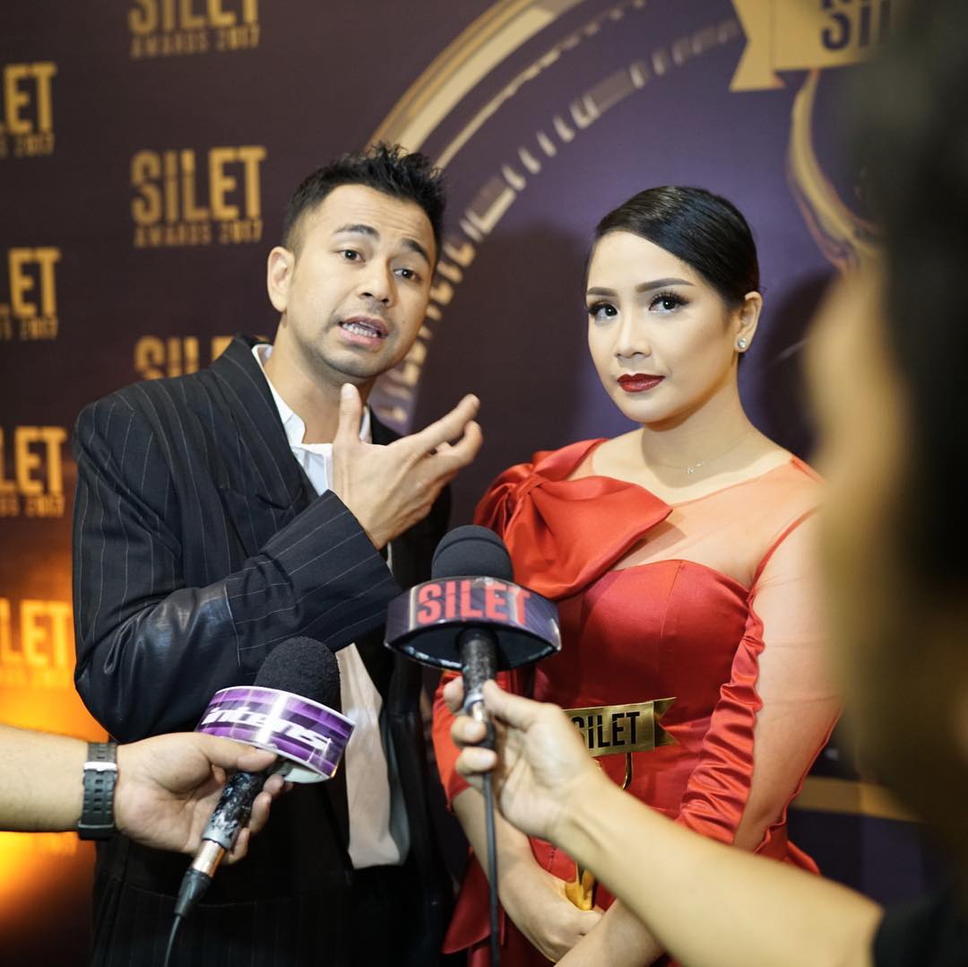 Nagita Slavina tampil cetar dengan gaun merah rancangan Michelle Alphonsa, saat menghadiri Silet Awards 2017 bersama Raffi Ahmad.