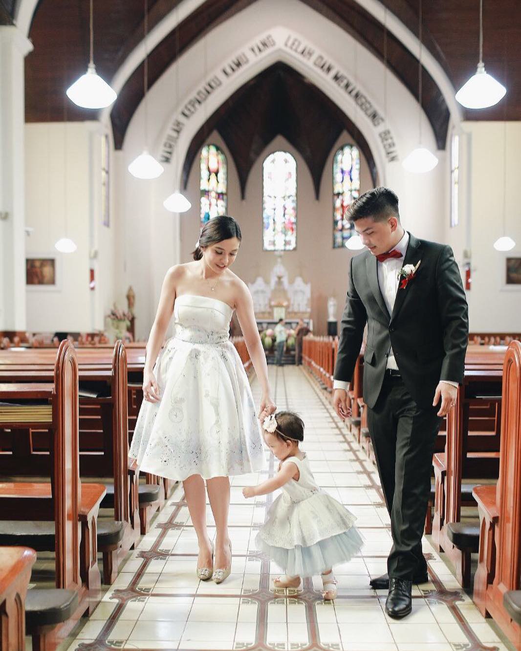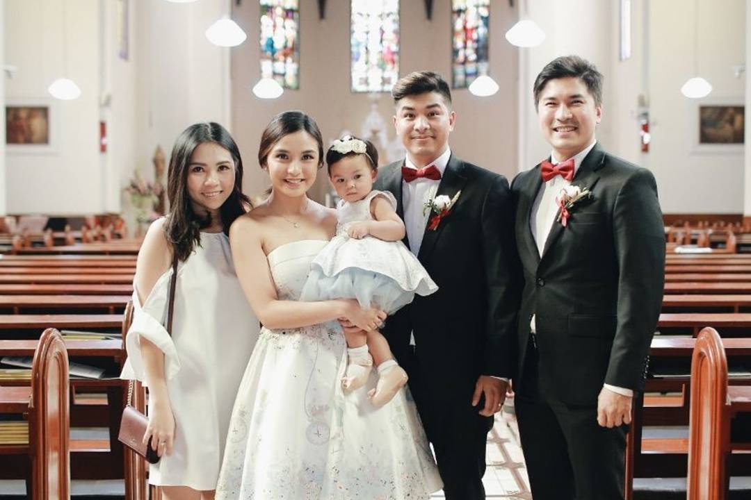 Pasangan muda itu mengajak serta si kecil Nastusha untuk menjadi tamu undangan pernikahan Indra You & Nikki Pratiwi tersebut.