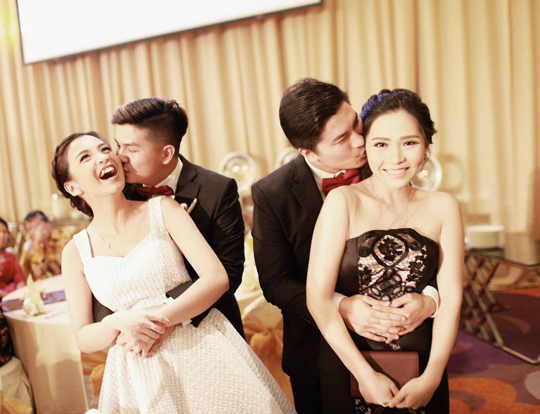Glenn & Chelsea lantas bertukar cium dihadapan tamu undangan lain. Sang kakak, juga tak mau kalah nih oleh sang adik.