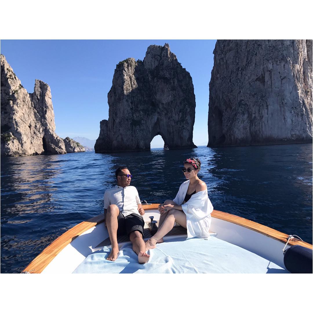 Ia dan suami bahkan menyewa kapal demi untuk menikmati angin laut Capri yang sejuk.