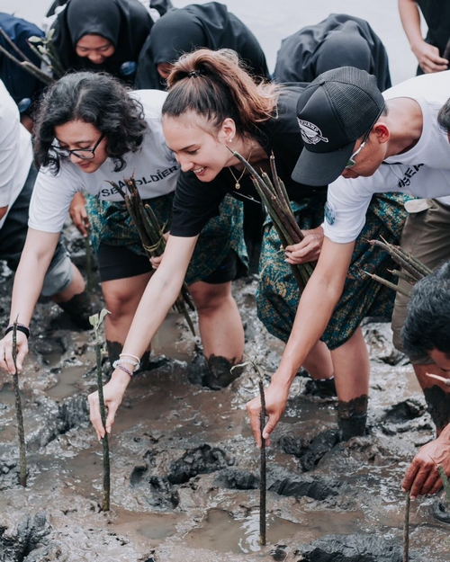 Rupanya agenda acara yang digelar Minggu, 15 Oktober itu adalah penanaman 1.000 mangrove. Nadine pun terjun langsung ke lumpur bersama 100 anak muda lainnya.