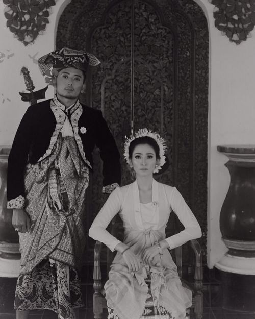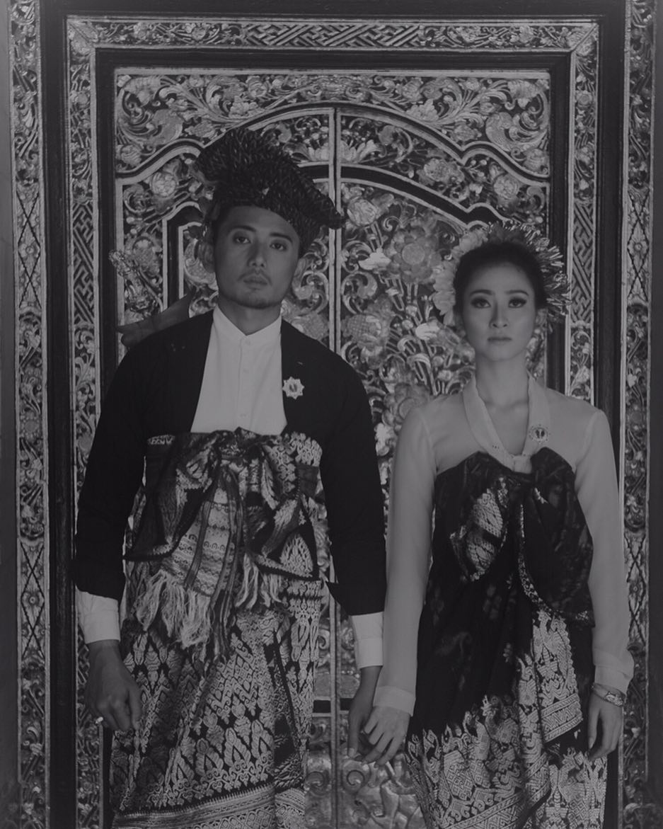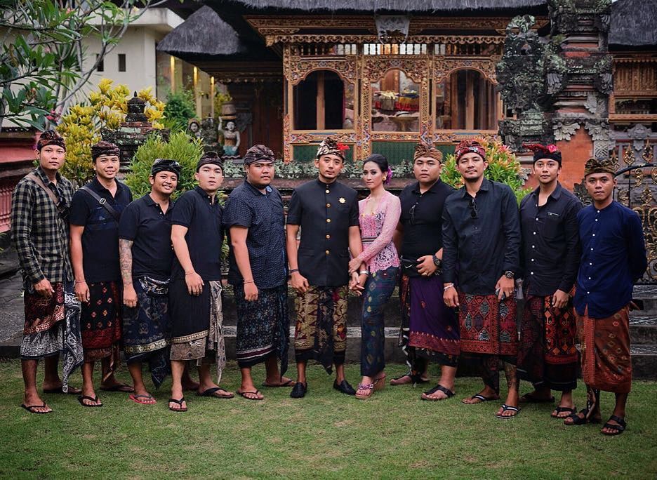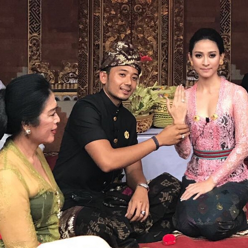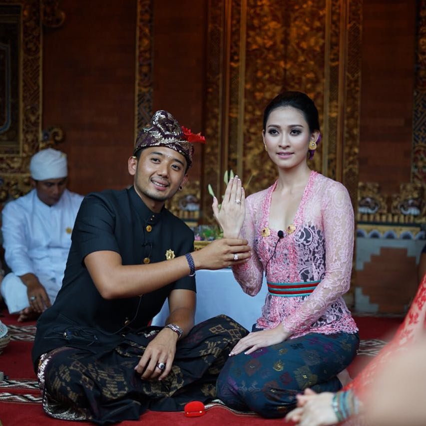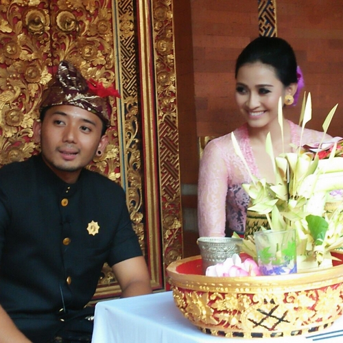 Pertunangan yang digelar di Antara Silver, Bali itu mengusung kental adat Bali. Tutde pun gagah mengenakan baju adat berwarna biru dongker.