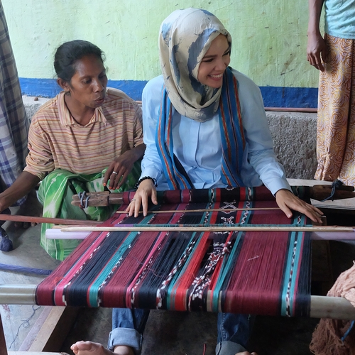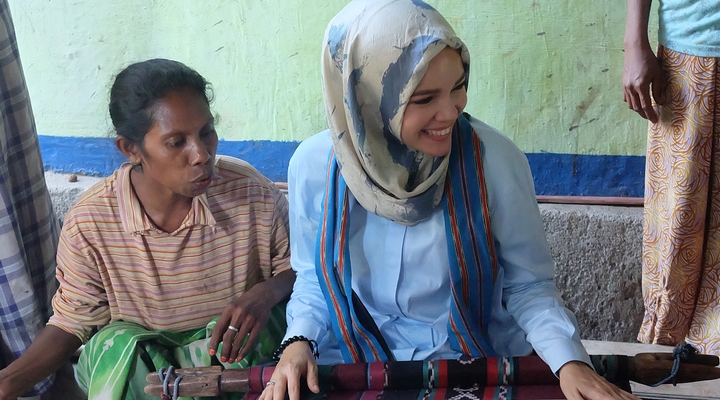 Ini merupakan kunjungan perdana Dewi Sandra ke Pulau Alor. Ia disambut oleh warga setempat yang memberinya kain tenun khas Alor.
