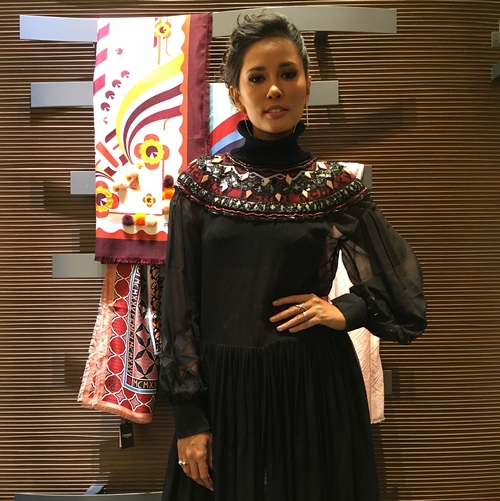 Disusul Titi Rajo Bintang yang juga nampak mempesona dalam balutan busana Fendi. Ia sangat eksotis bukan?