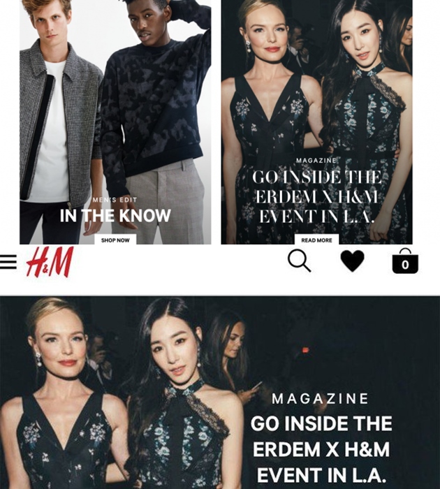 Tak hanya tampil memeriahkan acara fashion show tersebut, rupanya wajah Tiffany dan Kate Bosworth pun tampak cantik menghiasi halaman website resmi H&M. Keren banget ya!