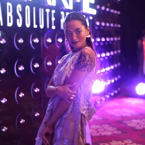 Bintang film Asmara Abigail menampilkan keeksotisan kulit dan tatonya malam itu. Cantik kan?