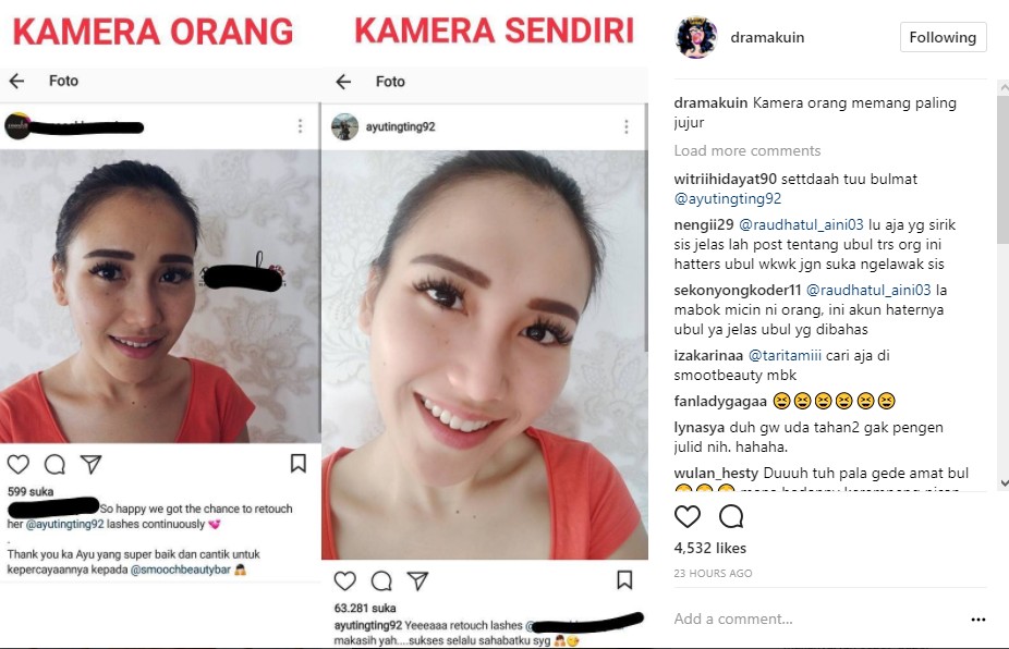 Sontak, perbedaan yang cukup mencolok itu pun menuai berbagai komentar nyinyir netizen. Bahkan, tak sedikit netizen yang menuding Ayu Ting Ting terlalu banyak menggunakan aplikasi pengedit foto.
