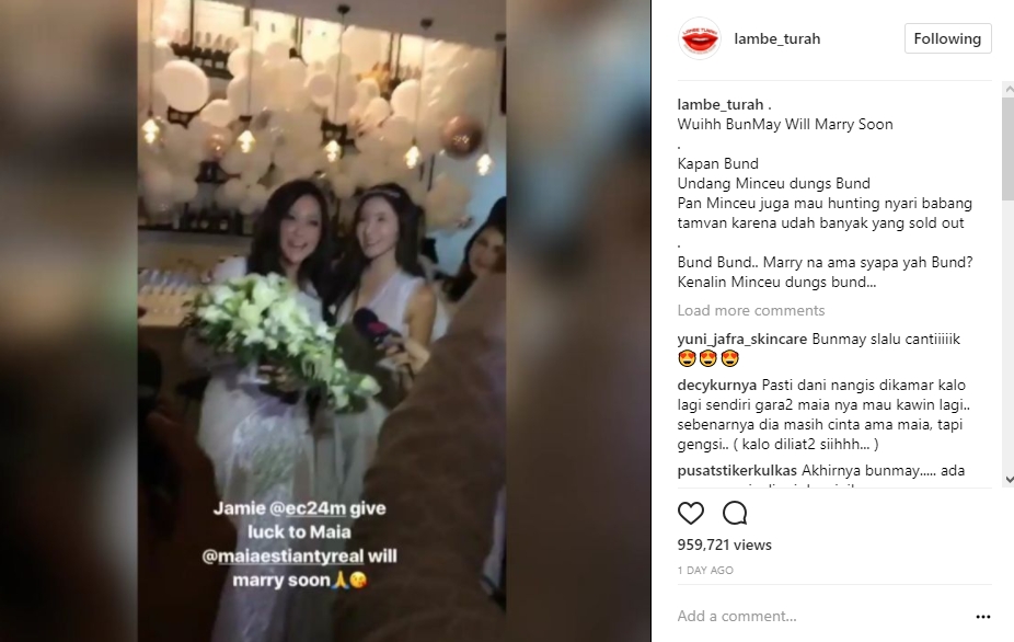 Saat itu, Maia tampak dikelilingi beberapa sahabat yang juga mengenakan gaun berwarna putih. Bukan hanya itu, seorang narasumber yang mengabadikan momen itu pun seolah mengungkapkan bahwa Maia segera menikah. "Jamie @ec24m give luck to Maia @maiaestiantureal will marry soon," tulis sang narasumber dalam keterangan postingannya.